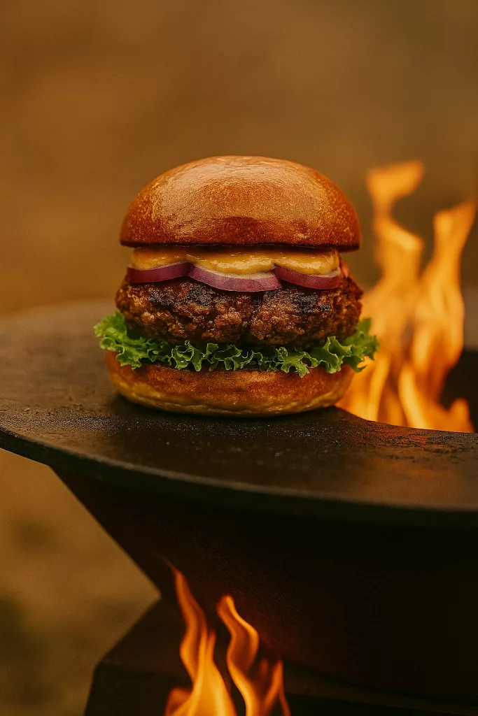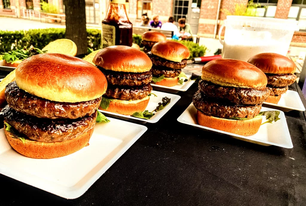 Frisch 200gr Prime Beef Pattys, regionales Rindfleisch, halal Lamm Hack, vegetarisch mit pulld beef und pork like, Chili con Carne oder in einigen interessanten Variationen wie Chorizo argentino uvam. live vor den Augen der Gäste zubereitet.