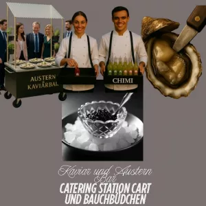 Herzhaftes (ideal für Empfänge, Messen, Partys) Bestückung ist individuell mit Ihnen abstimmbar. Unsere Servicekräfte bewegen sich zwischen den Gästen und kredenzen kleine Häppchen, Cocktails oder Dessert direkt aus dem Bauchladen.
