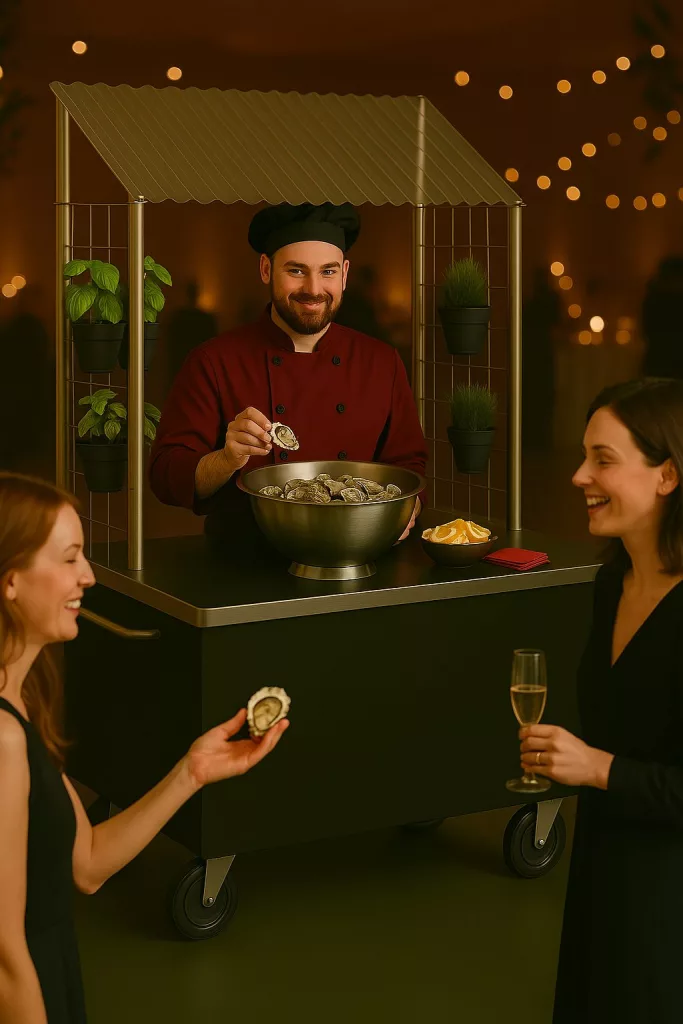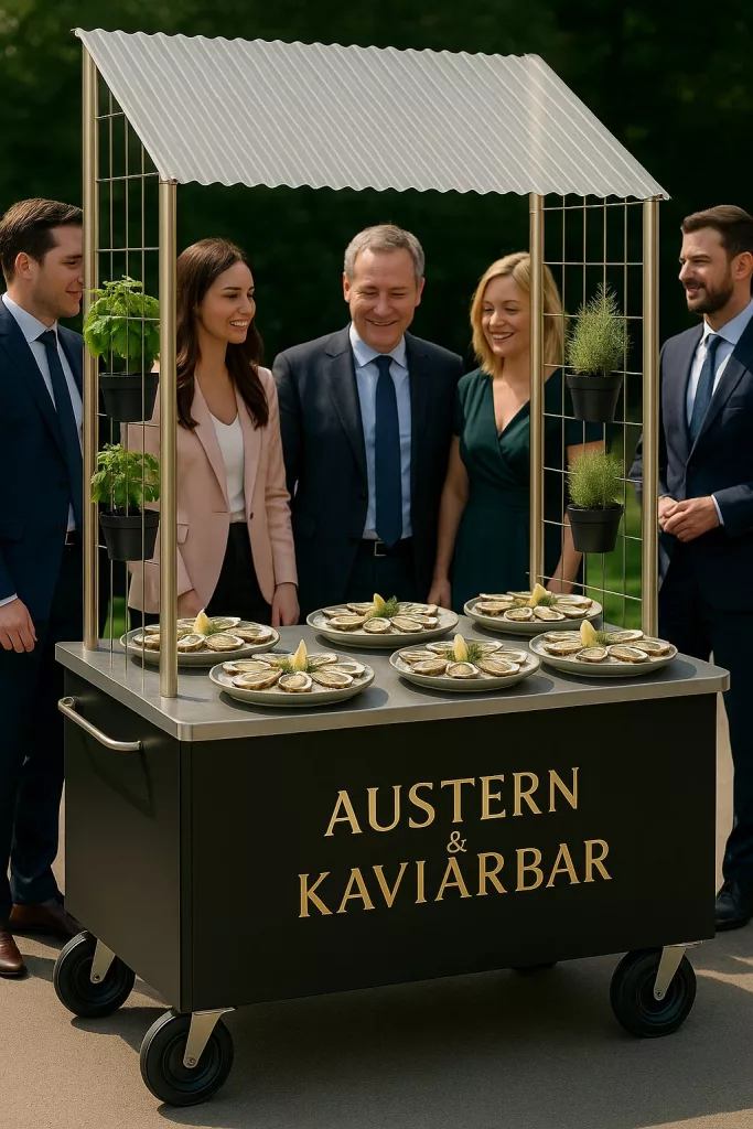 Alleinstellungsmerkmal, optimiert und macht ein jedes Event als Bar f. Austern, Kaviar, Desserts, Live Zubereitung von Pasta Pfannen, Crepes uvam einzigartig